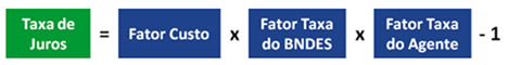 - A Taxa de juros é composta pelo produto entre os fatores: Custo Financeiro (Taxa de Longo Prazo - TLP), Taxa do BNDES e Taxa do Banestes.